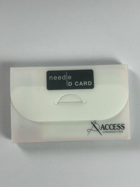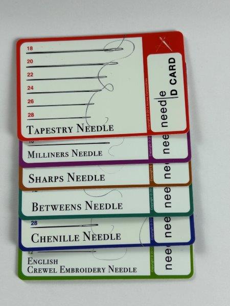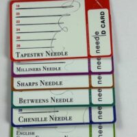 Each card gives a detailed description of the essential  needles used in a work box and includes pictures of the different sizes so you can easily identify  the needle you need to use for a specific project. Loose needles can easily be replaced to their “home” for safe storage and future use. The Identification cards are for  the following needles; Crewel, Milliners, Betweens, Sharps, Tapestry and Chenille. Each card is plastic coated and fits perfectly into the page pockets of The WorkBox Collection Needlebook or can be stored in its sturdy plastic case.